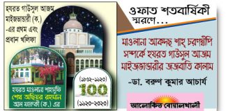 ডা. বরুণ কুমার আচার্য যুগে যুগে এই পৃথিবীতে এসেছেন অসংখ্য মুসলিম মণিষী। তারা আল্লাহ ও নবী রাসুলের প্রতি প্রেমে মগ্ন থেকেছেন। দ্বীন প্রচার ও ইবাদত বন্দেগিতে স্থাপন করেছেন অনন্য সব দৃষ্টান্ত। তাঁদের জীবনের লক্ষ্য ছিল একটিই, আর তা হলো অন্তরে আল্লাহকে ধারণ করা। তাঁদের ডাকে সৃষ্টিকর্তাও সাড়া দিয়েছেন, তৈরি হয়েছে অনন্য উপাখ্যান। আল্লাহর কাছ থেকে … Continue reading মাওলানা আকদছ শাহ্ চরণদ্বীপি সম্পর্কে হযরত গাউসুল আজম মাইজভান্ডারীর জজবাতি কালাম